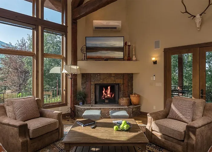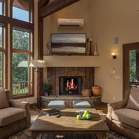 A refrigerator, an oven, and kitchenware are featured in a kitchen. The 5-bathroom villa is also located 15 minutes by car from Steamboat Springs airport.